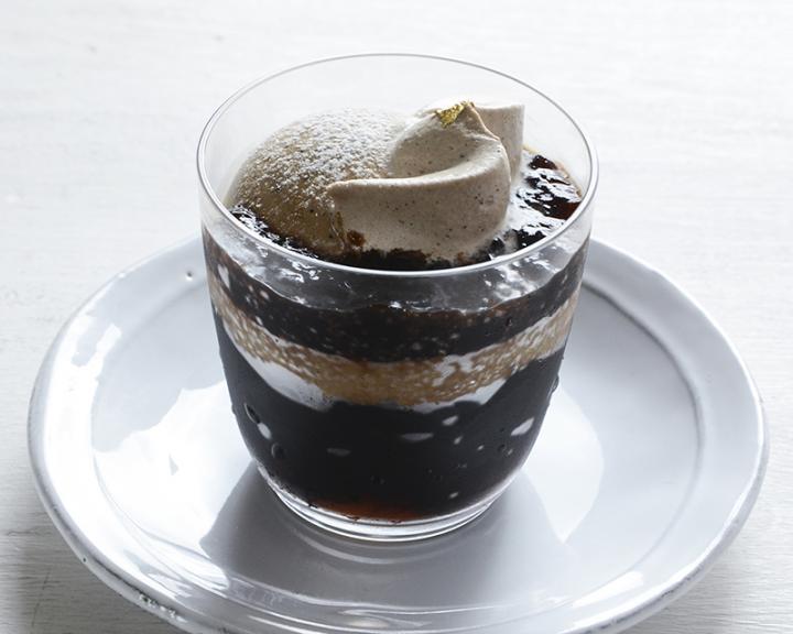 「カフェ・ド・パルフェ」は、カフェの看板メニュー「パフェ・ディモンシュ」を持ち帰りのできるスイーツにしたいという思いから生まれたスイーツ。 ゼリー、クッキー、シフォン生地、ムース、生クリームと、すべての層にフレンチローストのコーヒーを使用。甘さも控えめで、コーヒー好きにはたまらない、大人っぽい味わいです。