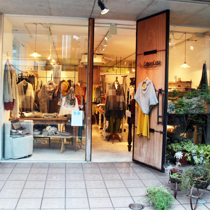 Lino(リーノ)はイタリア語、Lina(リーナ)はリトアニア語で、ともにリネンという意味。オーナーさんはもともと、十数年前からイタリアの食に関する仕事に携わっていて、そのときヨーロッパの上質なリネンに出会い、リネンのお店をオープンさせたそうです。緑がたくさん置かれたエントランスのドアは開いていて、お客さんをウェルカムしてくれている感じ。照明もあたたかくて優しい雰囲気ですよ。