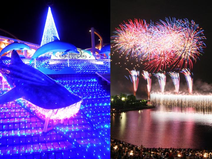 都内からひと足のばして電車で1時間ちょっと。「横浜・八景島シーパラダイス」でも、随所にクリスマス期間限定の装飾や演出がされています。 アクアミュージアム前広場の大階段にはドルフィンツリーが登場。ツリーの周りにはジンベエザメやイルカの光のオブジェが煌めき、まるで光の中を泳いでいるかのようです。 また海の動物たちのショーもクリスマスバージョンに。12/21日からは新たにプロジェクションマッピングとコラボした夜限定の新しいプログラムがお披露目されます。イルミネーションと夜のショーを目当てに、夕方から訪れるのも昼とは違う楽しみ方ができてオススメです。 また夜といえば、見逃せないのが冬の花火。12/21~25日は花火と音楽がシンクロした「花火シンフォニア」がクリスマスバージョンで打ち上げられます。長さ100mにもなるナイアガラ花火も登場。海面が光で照らされる幻想的な様子はシーパラダイスならではの光景です。 ◎ドルフィンツリー 【期間】11月9日~12月25日 【点灯時間】16:45~閉島 【場所】アクアミュージアム前広場大階段 ◎海の動物たちのショーfeaturingプロジェクションマッピング 【期間】12月21日(土)~3月31日(月) ※12/31、1/1を除く 【ショータイム】1日1回最終ショー(ナイトショー)限定 ※12/21~24の期間は2回実施 【会場】アクアミュージアム4F アクアスタジアム 【料金】水族館に入館できるチケットが必要 ※動物たちの体調により実施内容の変更・中止の場合あり ◎クリスマス花火シンフォニア 【場所】 ボードウォーク 【開催日時】 12月21~24日、20:00~約10分間 横浜・八景島シーパラダイス 【URL】http://www.seaparadise.co.jp/