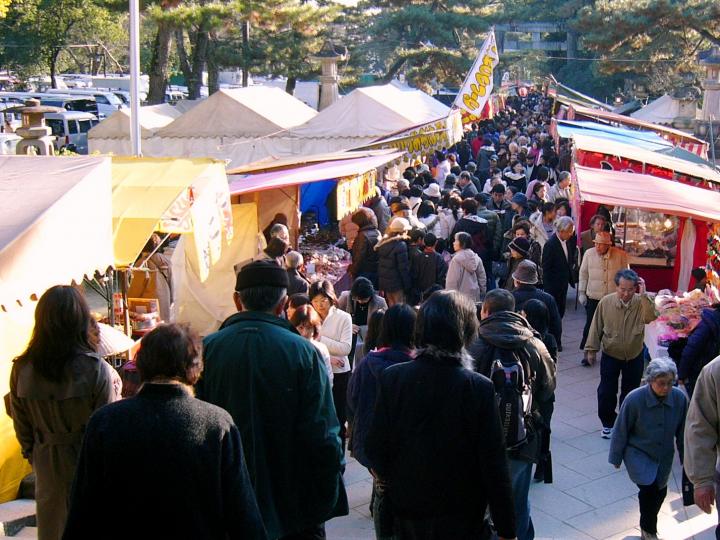 早朝から夜遅くまで約15万人の参拝者で賑わいます
