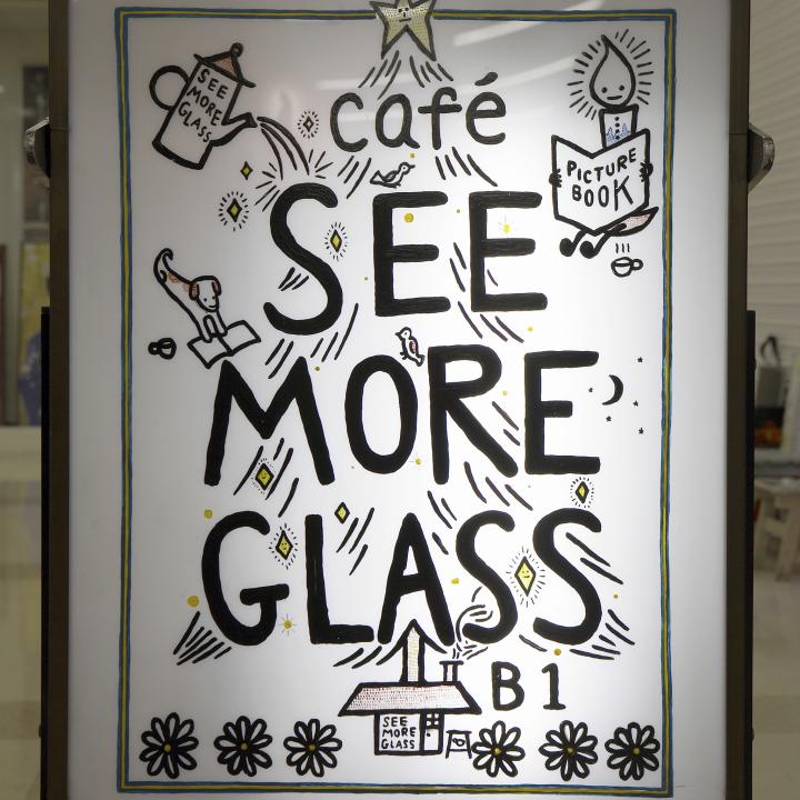 明治神宮前駅7番出口から出て、明治通り沿いを歩くと、すぐに京セラ原宿ビルが見えてきます。階段を下りて地下1階に行くと、「SEE MORE GLASS(シーモアグラス)」があります。徒歩約3分です。 お店に入ると、まず絵本の数の多さに圧倒されます。その数、2500冊以上。絵本をゆっくり読んでいる人もいれば、子どもに読み聞かせしている人もいます。