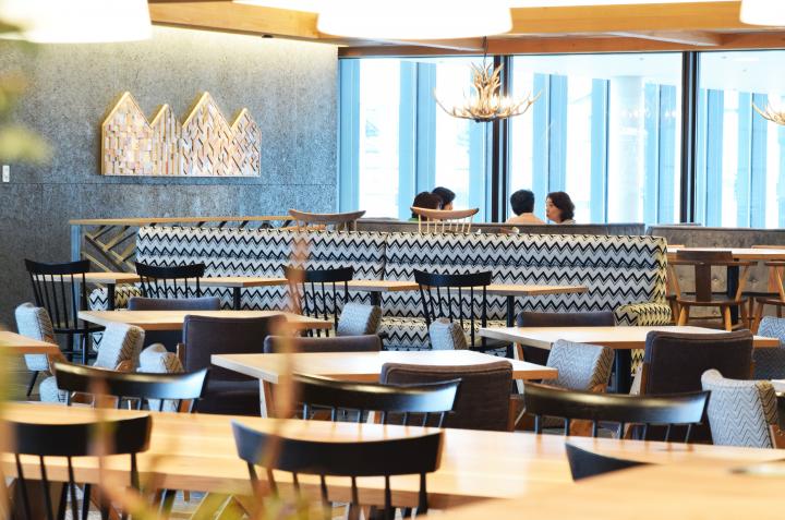 多賀城市立図書館にある「PUBLIC HOUSE多賀城店(パブリックハウスたがじょうてん)」は、ゆったり居心地の良いソファ席で東北産の食材を使ったランチやディナーを楽しめるカフェ&レストラン。ティータイムには、宮城名物・ずんだクリームを添えたホットケーキをいただきましょう。