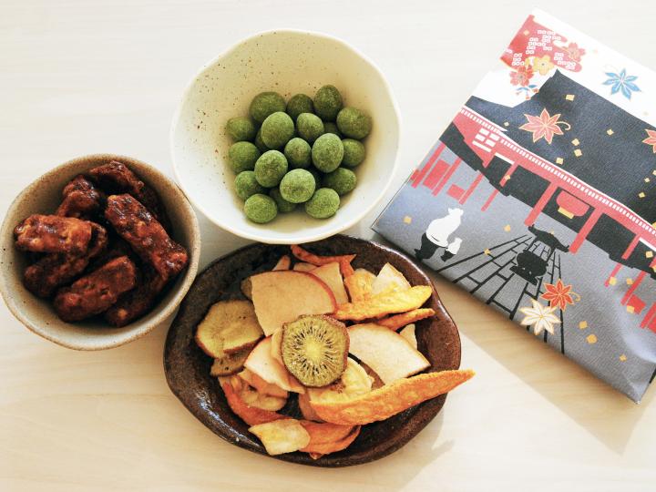 こちらは、フルーツの味をそのまま活かした「彩り果物チップス」580円。バナナ、リンゴ、パイン、レーズン、マンゴー、キウイを乾燥させ、砂糖を少し加えたもので、やさしい甘酸っぱさが口に広がります。 このほかにも、まだまだ種類はたくさん! 帰省の時の家族や友人へのお土産探しや、浅草寺の参拝帰りに立寄ってみてはいかが?