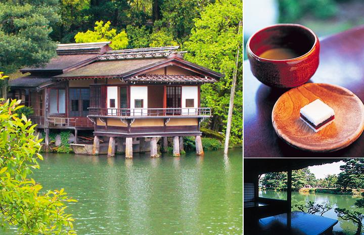 広い園内をくまなく見てまわるのはけっこう大変です。そんな時は、いくつかあるお休みどころでお茶にしましょう。 霞ヶ池のほとりに立つ「内橋亭」は、明治から続く茶店。座敷から見る池の景色は、一幅の絵のようです。和菓子と抹茶を楽しみながらのんびりとした時間を過ごすのもいいですね。 ○内橋亭 [TEL]076-262-1539 [時間]9:00~16:00(3月~10月中旬は~17:00) [休]水曜(不定休)