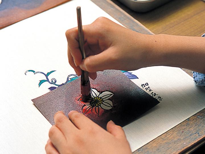 金沢ならではの手仕事をちょこっと体験してみたくて、兼六園の近くにある「加賀友禅伝統産業会館」に足を運びます。 加賀友禅は「加賀五彩」と呼ばれる臙脂、藍、黄土、草、古代紫の5色からなる、落ち着いた色彩が特徴で、植物や鳥などを写実的に描いた絵柄や、繊細なグラデーションを表現する「ぼかし」、木の葉が虫に食われた様を表現した「虫喰い」の技法なども独特なのだそうです。 「加賀友禅伝統産業会館」では、そんな技巧の粋をこらした加賀友禅の作品展示や友禅作家による実演を見学できます。そのほか加賀友禅を着て写真を撮る「きもの着用体験(2000円~、着物姿のポストカード付)」なども人気です。 その中で、今回は、友禅型染め体験で、ハンカチ染めにチャレンジしてみました。 体験時間は約30分ほど、5色の染料と彩色に使う型、模様を下書きしたハンカチを準備してもらい作業スタート。まずは葉から先が濃く、内側が淡くなるように塗っていきます。ポイントになる花は筆に慣れてから。 型が外れないように手でしっかり押さえながら彩色没頭。あっという間に時間が過ぎて、色鮮やかなオリジナルハンカチが完成です。ちょっとした作家気分が味わえますよ。 ○加賀友禅伝統産業会館 [所]金沢市小将町8-8 [TEL]076-224-5511 [時間]9:00~17:00 [休]水曜(祝日は営業) [入館料]300円