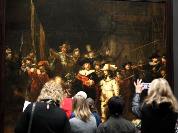 美術館の至宝、レンブラントの『夜警』の前は常に人だかり