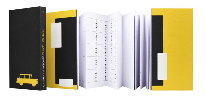 畳んでも、広げても飾れるノートは、インテリアとしても使えます。例えば「トラベルジャーナル」に思い出の旅をつづり、広げて飾っておくのも素敵。文章を書くのはもちろん、写真や切符、雑誌の切り抜きを貼ったり、イラストを描いたり、コラージュをしたりと、使い方は持ち主のアイディア次第で無限に広がります。