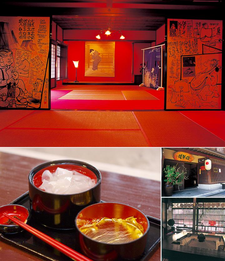 朝、金沢市内のホテルから城下町らしい街並みを色濃く残すひがし茶屋街へ。 格子戸と石畳が続く雅な通りは、歩くだけでも風情が楽しめます。またお茶屋を改装した雑貨店やカフェなどが並び心躍ります。 さて、ここひがし茶屋街で、ぜひ見ておきたいのがお茶屋さん。しかしそのほとんどは「一見さんお断り」です。そんな中でも一部、見学ができるお茶屋さんがあります。今回は、現代アートが溶け込む異色のお茶屋さん「金沢ひがし茶屋街 懐華樓」へ訪れてみました。 こちらは築190年以上の昔ながらの茶屋で、現代美術作家による襖絵などの作品を随所に公開しており、お茶屋の風情と現代アートという異色のコラボレーションを見ることができます。 豪華な朱塗りの大階段や草木染の畳、金箔貼りの茶室、加賀友禅の花嫁のれんなど、華やかさも見どころのひとつ。囲炉裏を囲んだ喫茶スペースもあり、女将おすすめの自家製くずきり(黄金くずきり 1365円)が大人気。 お茶屋の新たな魅力を発見できる場所です。 ○金沢ひがし茶屋街 懐華樓 [所]金沢市東山1-14-8 [TEL]076-253-0591 [時間]9:00~17:00 [休]無休 [見学料]700円