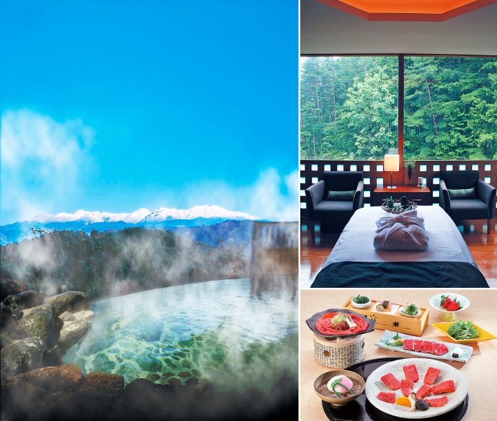 高山駅に到着したら無料のシャトルバスで本日の宿泊先「ホテルアソシア高山リゾート」へ。 ヨーロピアンテイストのエレガントなリゾートホテルです。天然温泉や本格的な料理はもちろん、全客室から北アルプスが眺められるロケーションが魅力です。5階と7階にある展望大露天風呂からも北アルプスを一望でき、森に囲まれた併設のスパもリラックスできると好評です。夕食には和食かバイキングが選べます。 →次回は朝市見学から高山の町をめぐって帰路へ、2泊3日の旅もいよいよクライマックスです。 ○ホテルアソシア高山リゾート [所]高山市越後町1134 [TEL]0577-36-0001 [時間]IN15:00 OUT12:00