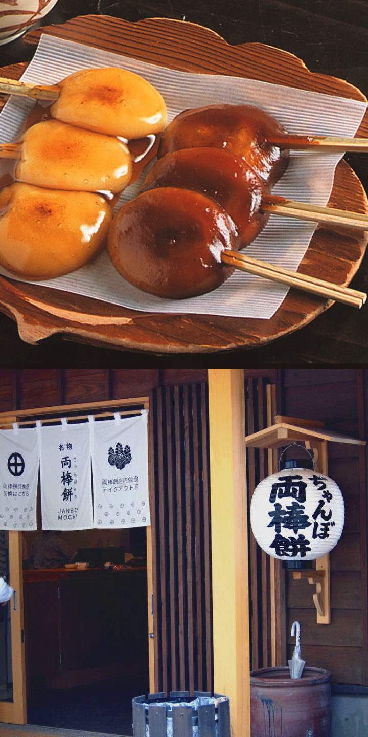 園内はとても広いので、歩き疲れたら「両棒屋(ぢゃんぼや)」でひと休みしましょう。名物の「ぢゃんぼ餅」は醤油風味と味噌風味の二種類の味があり、もちもちでコシのある食感のお餅に、トロトロの甘じょっぱい味噌ダレとやさしい甘さの醤油ダレが絡みます。 ちなみに両棒とは、両=「りゃん」、棒=「ぼ」が訛り、「ぢゃんぼ」と呼ばれるようになったのだとか。武士の持つ大小2本の刀の差し方に似ていることから、鹿児島の名物として定番のお菓子になったそうですよ。 仙巌園をぐるっと一周してみると、知れば知るほど奥深い、昔と今の鹿児島の魅力を発見できました。 ぜひみなさんも足を運んでみてくださいね。 素晴らしい景色と美しい薩摩切子、心が安らぐひとときを過ごせますよ。