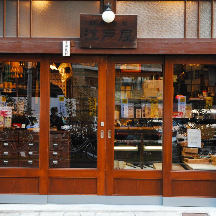 小伝馬町駅から徒歩5分。江戸時代に物づくりの町として栄えたという大伝馬町界隈の一角に、モダンな外観の「江戸屋」はあります。 引き戸を開け店内へ入ると、刷毛はもちろん、洋服ブラシ 、靴ブラシ、歯ブラシ、さらにショーケースの中に化粧品ブラシなどが、ずらりと並んでいます。 こちらのお店は、幕府お抱えのふすまや障子などを貼る刷毛師として活躍した、初代・利兵衛さんが刷毛専門店として開業。明治時代からは時代の変化に合わせ、刷毛に限らず、いろいろなブラシを職人の手で丁寧につくり、販売しています。