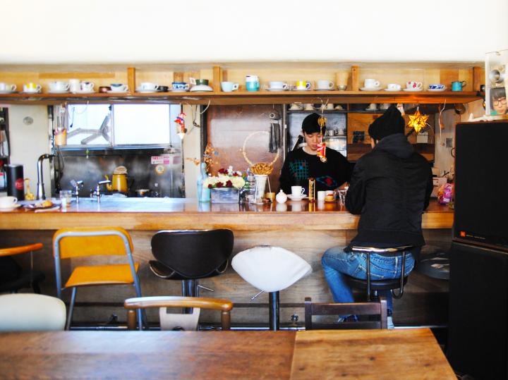 京成曳船駅から徒歩5分。明治通り沿い、キラキラ橘商店街の入口に、お店はあります。手づくり感あふれる店内は、築80年以上の長屋をリノベーションしてつくられていて、不思議なおもちゃや置物がいろいろと置かれた、大人の秘密基地のような空間です。 ちなみに、「爬虫類館分館」というとても気になる店名ですが、爬虫類はおらず、本館もありません。建築家のオーナーが“爬虫類”の、お店のマスターが“分館”の響きを気に入り、この名前がついたそうです。 こちらのお店は、朝から夕方までは喫茶店「珈琲の樹 LAT36°N」、夜はレストラン「tome tome」の2店を軸に、日替わりの店長も、同じ場所でそれぞれ看板を掲げて、お店を開くちょっと変わったスタイル。 たとえば、とある土曜日は、朝10:00から18:00まで「珈琲の樹 LAT36°N」を開き、同時に12:00~25:00に和洋中の定食が得意なめしや「青木や」も開き、さらに、深夜1:00から5:00までは、ウィスキーを中心にしたショットバー「bar der vogel」もオープン、というように、同じ店の中でいろんな店長が登場します。
