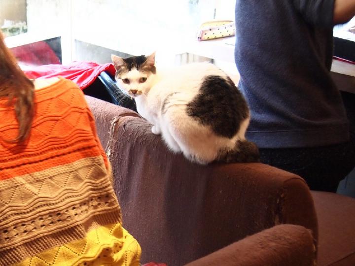 猫を愛でつつ、自家製のブルーベリーチーズケーキとカプチーノをいただきます。どちらもしっかり本格派。もちろん、満腹な猫たちはケーキに見向きもしません。 カプチーノメーカーで暖をとっているうちに眠りこけてしまう子。ソファの背で外を眺めていたらカメラに気づいてしまった子。 自然体な猫たちを、私たちにも居心地いい空間で堪能できる至福...、猫カフェ起源台北ならではの、粋な旅の過ごし方です。