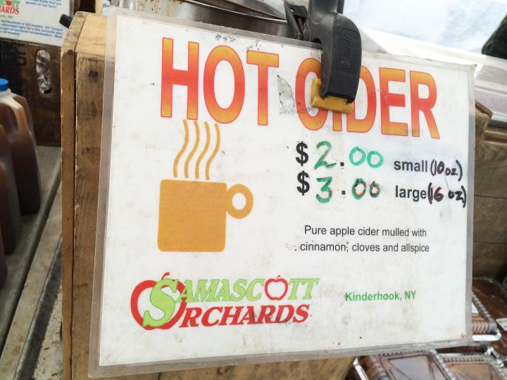 リンゴの収穫期は秋ですが、アップルサイダーは通年味わうことができます。 夏は冷たく、そして冬場は熱々にしていただくのが最高においしいです。特に寒い外歩きの最中、カップになみなみと注がれたアップルサイダーを口にすれば、体の芯からジワリジワリと温まってくるから不思議。マーケットのアップルサイダーがコールドからホットに変わるのを見ると、「いよいよ寒い季節の到来だなぁ」と、季節の移り変わりを実感するのです。