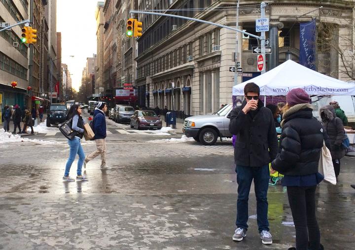 アップルサイダーはカフェでも飲めるし、スーパーでボトル入りのものを購入することもできます。けれども、おすすめはあえて市内各地で開催される グリーンマーケットやストリート・フェアで売られているもの。屋外販売のアップルサイダーは一杯$1.50~2と価格もお手ごろ。近郊の果物農家が丹念に造ったものを紙コップに注いでもらい、マーケットの品々を物色しながら飲み歩くのが地元流です。