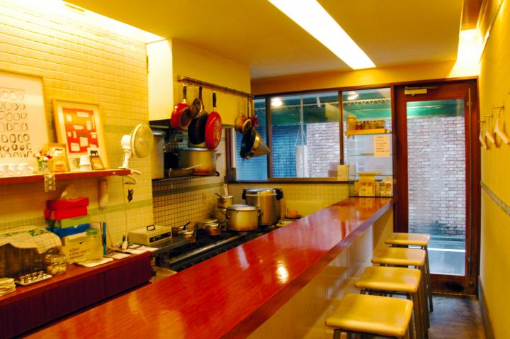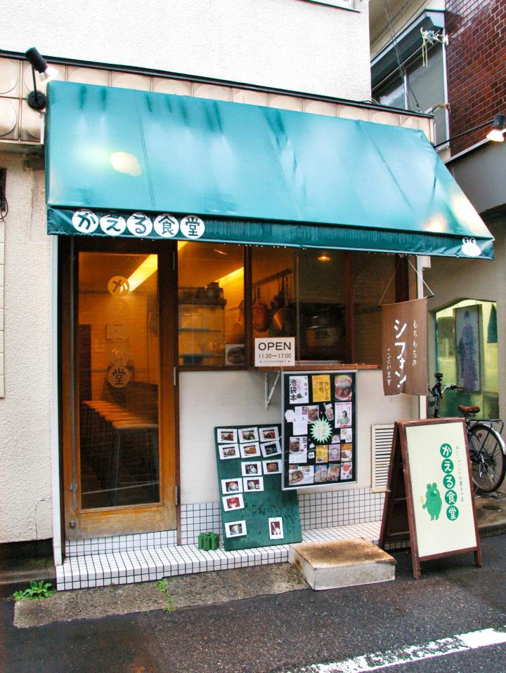 要町駅の5番出口から徒歩4分。山手通りと直交する、池袋駅へとのびる大通りを曲がった小路に、少しとぼけた表情をしたかわいいカエルの看板があります。 そこが知る人ぞ知るカレーの名店「かえる食堂」です。 オーナーの山野さんご夫妻がお二人だけで切り盛りするこちらのお店。 カウンター7席とけっして広くはありませんが、こぢんまりとした居心地のよい空間です。