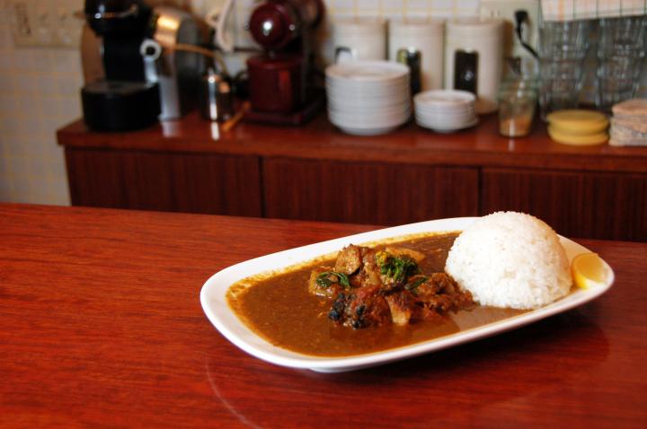 食事メニューの担当はご主人の正徳さん。7種類のカレーと海南チキンライスがありますが、はじめての人におすすめなのはミックスカレー。自慢のチキンと定番の野菜カレー、両方のよさを味わうことができます。 こだわりのチキンは、手羽元をマリネのように特製のソースに浸し、ホロホロにほぐれるような絶妙の火加減で焦げ色をつけた香ばしい逸品です。柔らかいナンコツの食感もたまりません。 カレーのルウは12~13種のスパイスと、季節の野菜を巧みに生かしたオリジナル。野菜の旬に合わせて材料がかわるので、常連さんでも驚くほど、短いスパンで味の変化が楽しめます。今回はなんと、手作りの切干大根がアクセントに入っていました。 さりげなく添えられたレモンを絞ると、その酸味で味わいの調和も高まります。季節によっては、カボスやスダチなどの柑橘類を使うこともあるそうです。