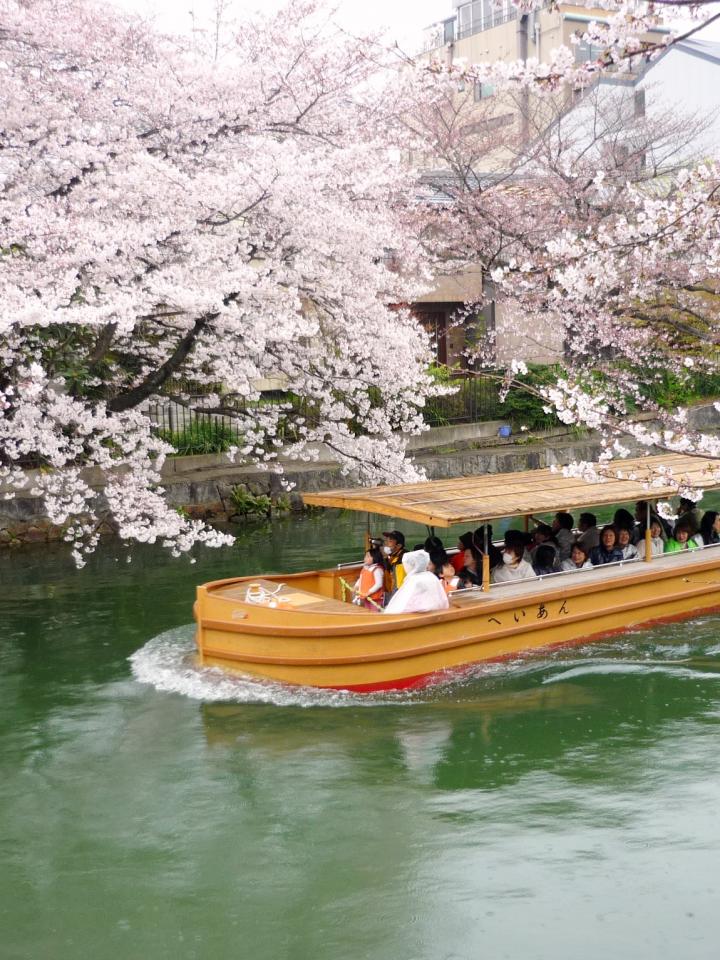「 琵琶湖疏水 」を彩る桜並木を、十石舟から優雅に仰ぎ見る
