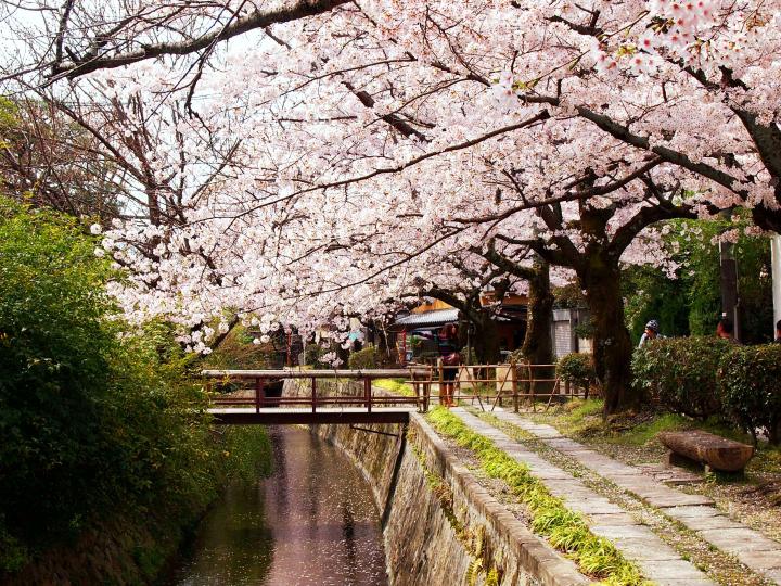 南禅寺からさらに北へ徒歩10分ほど歩くと東山の麓に再び疏水が現れ、この疏水に沿った散策道が「哲学の道」と呼ばれています。日本を代表する哲学者として知られた西田幾多郎(にしだきたろう)が、かつて思索しながら歩いたところから名付けられたといいます。 哲学の道に咲く桜は、日本画家・橋本関雪(かんせつ)の夫人が夫・関雪が世に知られたお礼にと寄贈した桜で、「関雪桜」と呼ばれています。桜が散る頃になると、疏水の水面には花びらが流れて花筏となり、京情緒あふれる散策道となります。 まもなくソメイヨシノが満開を迎える京都。疏水からインクラインへ、そして南禅寺から哲学の道へと、うららかな春を感じながら東山界隈の桜さんぽを楽しんでみましょう。 ○哲学の道 [所] 京都市左京区銀閣寺町付近から若王子町付近