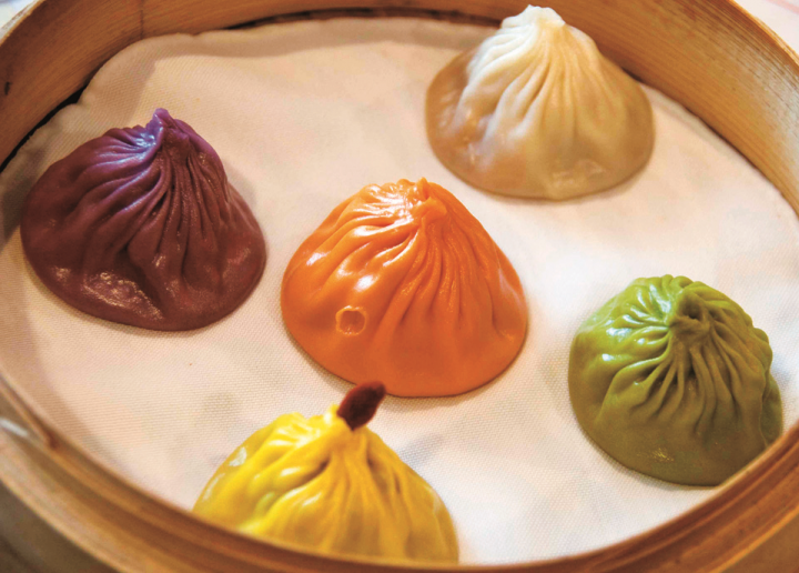 まずは食事へ♪5つの味が楽しめるカラフルな五色湯包