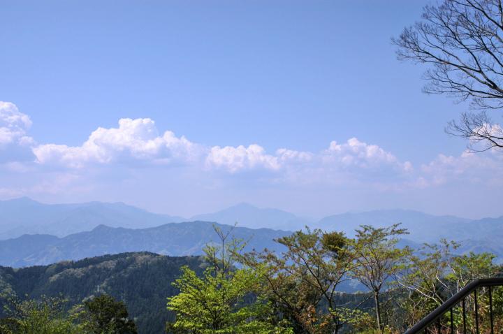 いろはの森コースを1時間ほど登ると、高尾自然研究路の1号路と合流し、山頂へと至ります。 山頂の「大見晴台」からは丹沢の山々を見渡す爽快な眺めが広がります。 この日は残念ながら見えませんでしたが、天気や時間帯によっては富士山が見えることもあります。