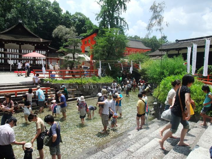 池に足を浸して無病息災を願う下鴨神社の「御手洗祭」