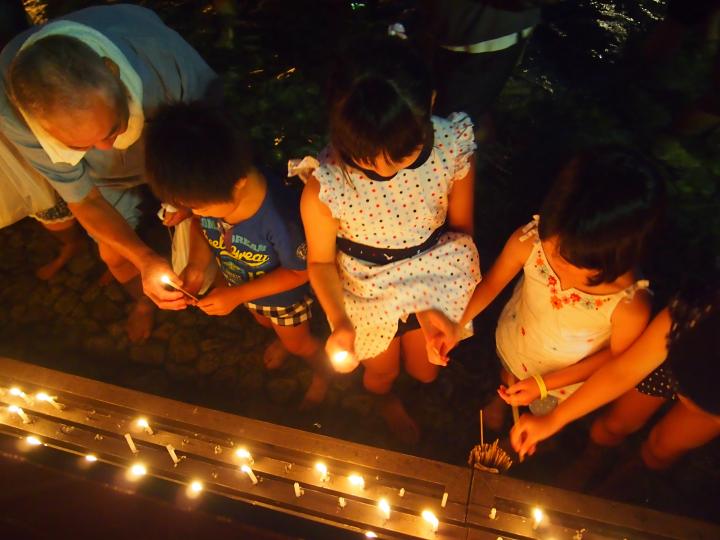 本殿の東に位置する御手洗池では、7月の土用の丑の日頃(2014年は7月26日~7月29日)に「御手洗祭」が行われ、参拝者は池の冷たい水に足を浸して、知らず知らずのうちに身についた罪や穢れを洗い流し、無病息災を祈願します。 靴を脱ぎ、膝上まで足を出してスタンバイ。受付でロウソクを授与してもらってゆっくりと川の中へ。水はひんやりと冷たく、身も心も引き締まるよう。ロウソクは禊の神が祀られる御手洗社に献じ、池から上がったあとは、地下から汲み上げたご神水を頂いて体の中からも身を清め、不老長寿のご利益を授かりましょう。 御手洗祭は早朝から夜遅くまで行われており、昼は暑気払いにもなり、夜はロウソクや提灯の明かりが水面を照らして幻想的な光景が広がります。 ○下鴨神社(しもがもじんじゃ) [所]京都市左京区下鴨泉川町59 [TEL]075-781-0010 御手洗祭 2014年7月25日~29日 05:30~22:00 献灯料300円