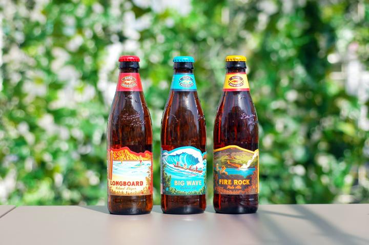 コナビール各900円(左からロングボード、ビッグウェーブ、ファイアーロック)