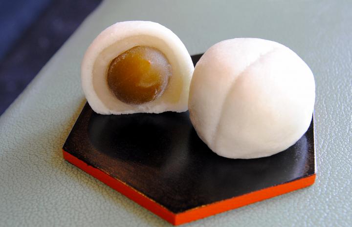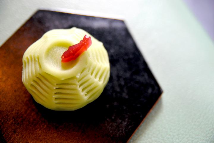 大きさ、色、形、どれをとっても本物そっくりな「びわ」248円。 中には金時豆で作った種まで入っているほどの精巧さ。白玉粉を蒸して、砂糖や卵白などと一緒に火にかけて練り上げた和菓子で、中には白あんが入っています。こちらも6月下旬頃までの販売予定です。 7月からは青かえでやせせらぎなど、涼しげなものや様子を表現した和菓子も登場するので、そちらも楽しみにしたいですね♪