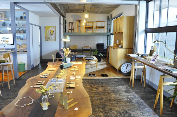2~4階へは、一度外へ出て、ビルの脇にある階段を上りましょう。2階にはデザイン事務所と写真館、3階はシェアオフィススペースが入っており、4階にあるのがオリジナル家具と雑貨、アクセサリーを販売する「TIMBER COURT」(ティンバーコート)のショールームです。 ソファやテーブルなどの家具は、それぞれ木材や張り地を選ぶセミオーダー式。すべて山形県上山市にある工房で製作されています。天然無垢材を使用し、ミツバチの巣から採れる“蜜ろう”のワックスを薄くコーティングするのみで、木のナチュラルな風合いや経年変化も楽しめるのが特徴。「こんな家具をそろえた家に住んでみたいな」と、思わず憧れてしまいます。