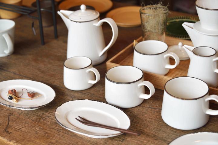大井寛史さんのうつわ。一見ホーローのような風合いですが、半磁器製でやさしい白です