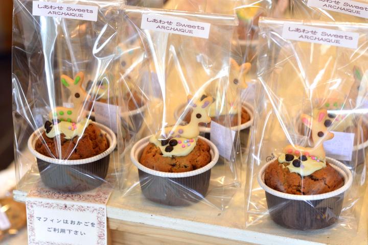 いちばん人気は、奈良のしかさんマフィン380円(甘納豆ときなこ)
