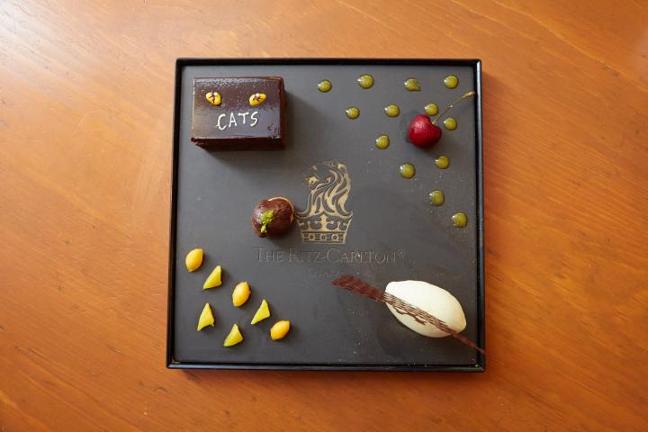 大阪四季劇場から歩いてすぐにある「ザ・リッツ・カールトン大阪」では、劇団四季ミュージカル「キャッツ」とのコラボレーションデザートが登場。キャッツのロゴをデザインしたチョコレートケーキで、オレンジピールを入れた少し大人の味わいです。「イタリア料理 スプレンディード」と「ザ・ロビーラウンジ」のランチで、2016年12月31日まで、楽しむことができます。