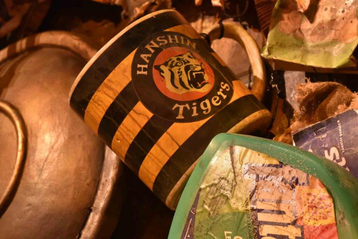 ミュージカル「キャッツ」は、都会のごみ捨て場が舞台です。舞台や客席には猫目線の大きさで作られた、実物の約3倍のさまざまなゴミのオブジェが。阪神タイガースのカップやたこ焼き器など、大阪ならではのアイテムにも注目をしてみてくださいね。