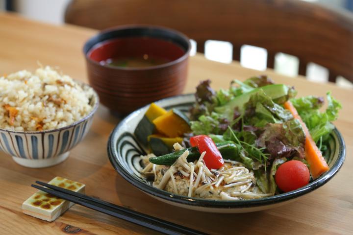 店の目の前は、かわいい店の看板にも描かれている“登り窯”。お隣は約300年続く「瀬戸本業窯」です。こちらの名物は“ごも”と呼ばれる鶏五目飯。職人さんたちが、窯を焚く忙しい時期におむすびにして食べていたそうで、自家製の味噌で作った味噌汁やおかずとともに、とってもやさしい味わい。お天気のいい日はテラスでひなたぼっこしましょ♪ ○窯横カフェ [所]愛知県瀬戸市東町1-6 [TEL]050-3407-7190 [時間]11:00-18:00 [休]月~木曜(祝日の場合は営業) [P]2台 [HP]https://www.facebook.com/113893645451026