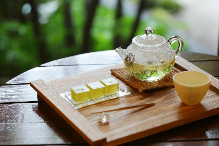 お茶とお菓子で700円。茶碗は青木良太さんの作品です