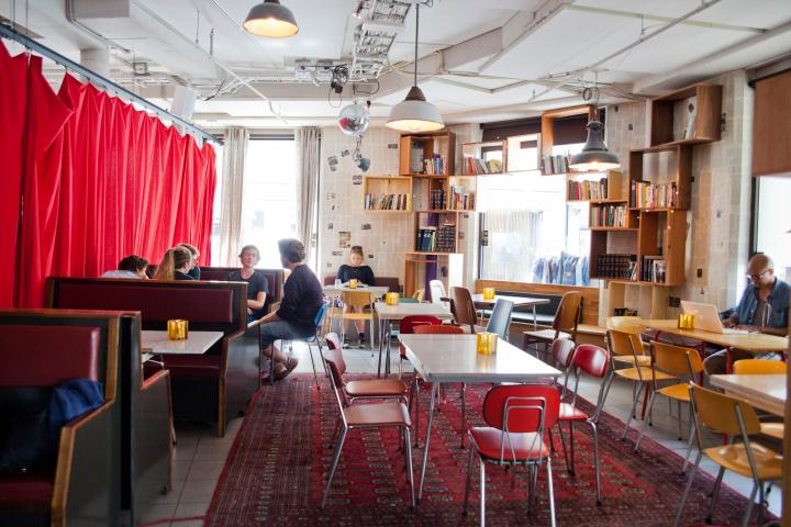 オスロを観光中に休憩したくなったら、中央駅から徒歩で約5分ほどのヨウング広場前にあるカルチャーハウス(ノルウェー語読みでは「クルチュールフーセ」)に立ち寄ってみてはいかがでしょう。 日中はカフェ、夕方以降はバーとなっており、おいしいノルウェーコーヒーやお酒を味わうことができます。 店内のインテリアにもぜひ注目してみて。まるで「小さな劇場」のように装飾されていて、空間ごとにインテリアの雰囲気も少しずつ異なります。壁には北欧アートのセンスが垣間見れる、絵画やポスターがちらほら。 お客さんたちは、ノートパソコンを持ち込んで作業をしていたり(Wi-Fi無料)、読書をしていたり、友人とおしゃべりしています。文化的な場所ということもあり、アーティストや個性的な人が集う場所。みんなのファッションも、なんだかおしゃれ。