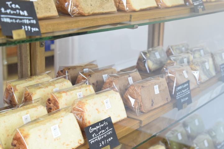 さわやかな白い外観の建物のガラス戸を開け、中に入ると、目の前のショーケースには、約15種類のシフォンケーキが並んでいます。 フレーバーは、有機豆乳を使った定番の「プレーンシフォン(259円)」や、夏らしい「グレープフルーツ(291円)」、「シナモン&ココナッツ(302円)」などバラエティ豊か。季節や日によってラインナップは変わるので、何度も足を運びたくなります。