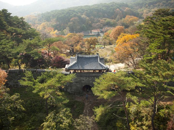 ソウルから車で1時間ほど、京畿道広州市にある南漢山城(ナマンサンソン)は、約2000年前の高句麗時代に造られた山城です。全長11.76㎞、面積は2.3 km²あり、都が攻められたときの避難場所としての役目がありました。 石垣で築かれた城壁は、何代もの王に渡って幾度か修繕されてきました。それぞれ時代ごとの建築技術が見られることも世界遺産登録の理由のひとつとなっています。