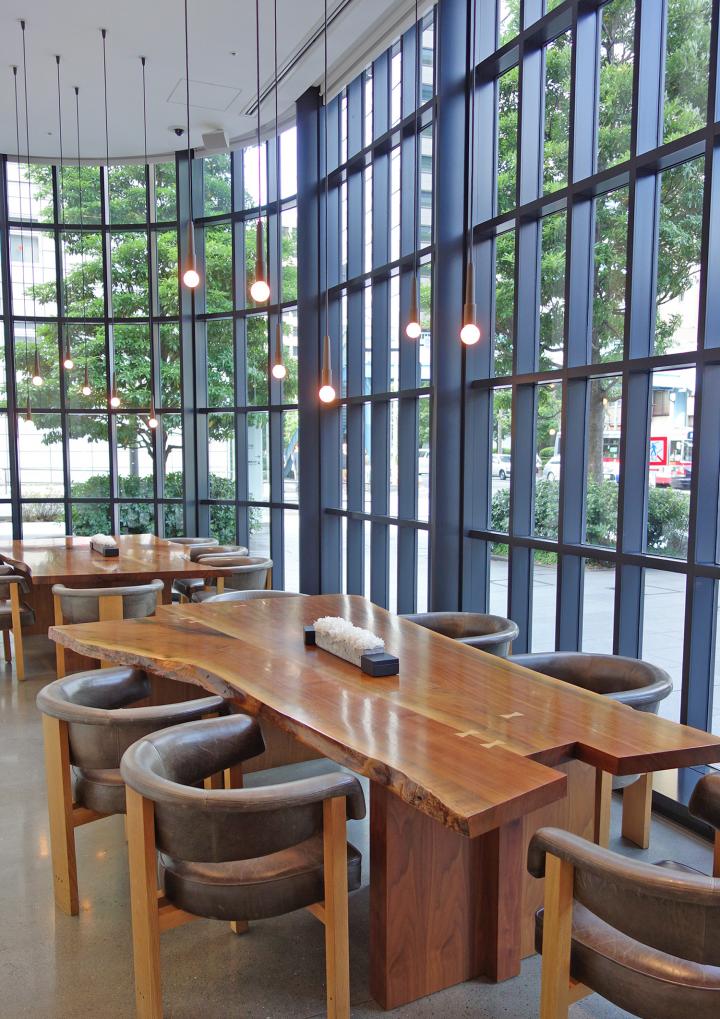 ガラス張りの心地よいカフェスペース