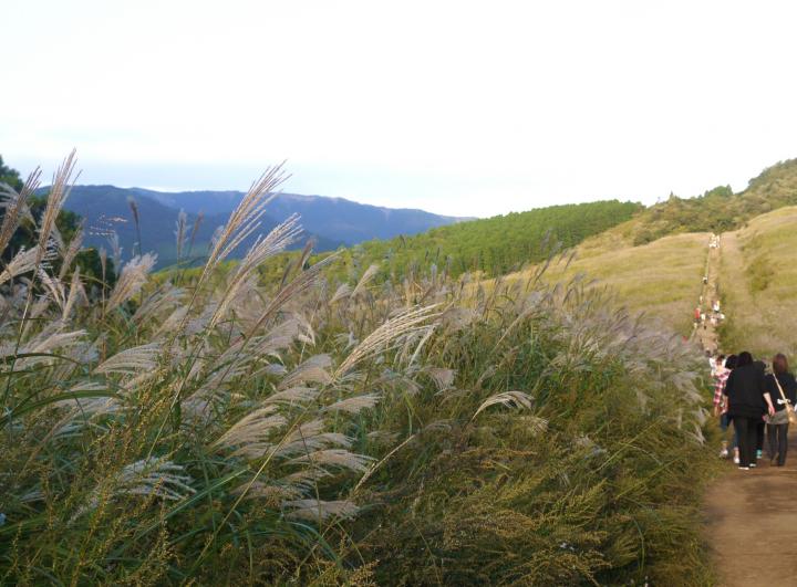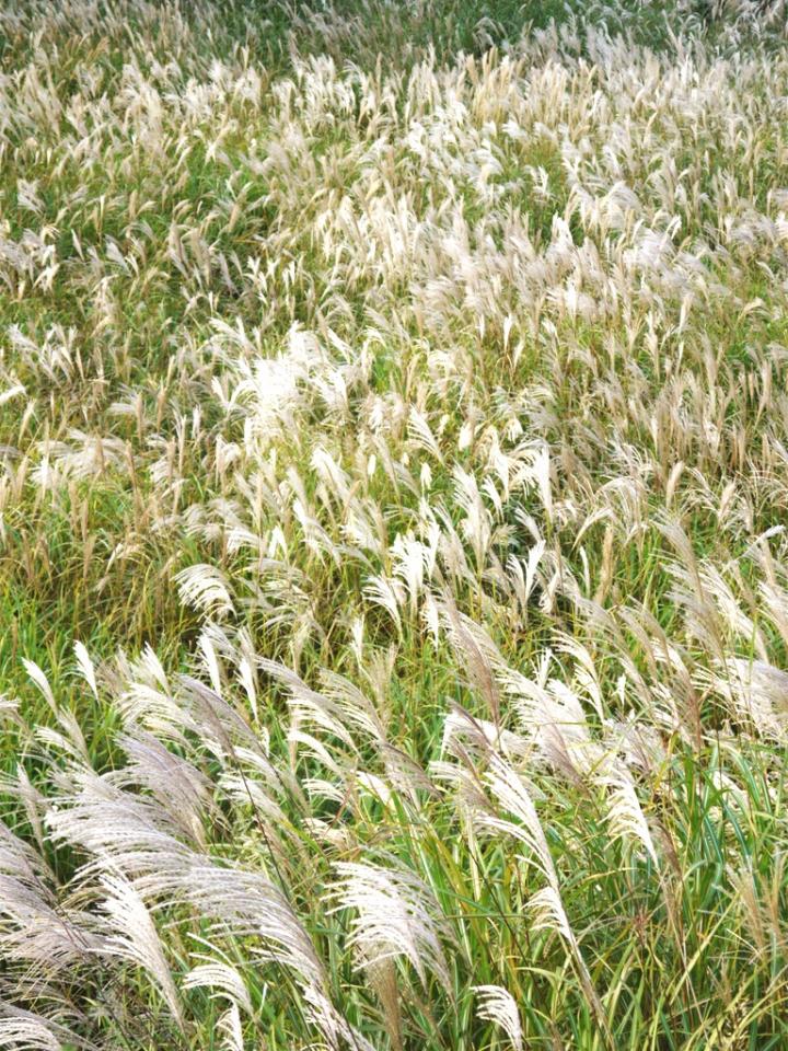遊歩道をのぼりきって振り向くと・・・一面に広がるススキ草原