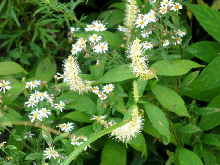 もちろんススキだけでなく、いたるところに秋の草花が見られます。ススキの間に目を凝らしてみましょう。かわいらしい花が見つかるかも。また、木々もだんだんと冬支度をする頃なので、左右に広がる山のところどころにも赤や黄、オレンジ色がチラホラ見つけられますよ。