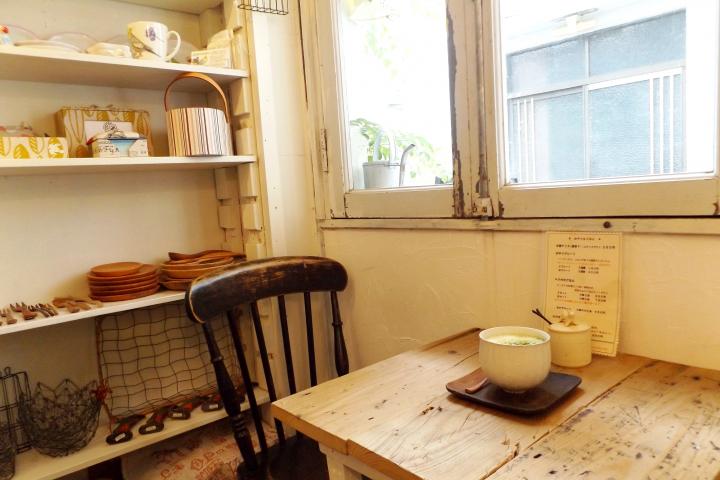 店内はわずか7席と、とっても小さいですが居心地の良さは抜群です。カウンターと小さなテーブル席は目線が合わないように配置されていて、ひとりの時間を満喫するのにぴったりなんです。 本棚には、食や料理、インテリアや旅にまつわるライフスタイル本や生活雑貨の本などがずらりと並んでいます。これらの古本は全て販売しているので、手に取って気に入った物があれば購入することができますよ。