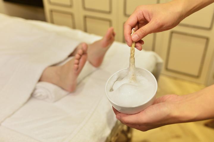 フットウォッシュではエルバビーバ「REボディウォッシュ」を使用。4種のアロマから選べる