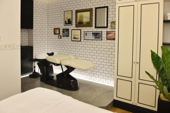 アートが飾られた施術室。写真はシャンプー台やドレッサーも完備したVIPルーム(+2000円/3時間)