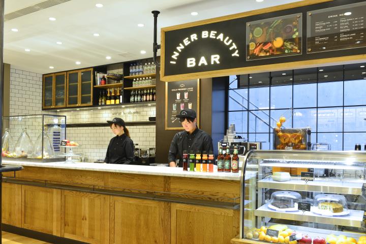 クレンズサロンでお肌の調子を整えたあとは、体の中からもキレイを体感できる「インナービューティーバー」へ。いちばんのおすすめは、オーガニックや無農薬などの野菜や果物をふんだんに使ったコールドプレスジュースです。 素材を押しつぶすように低速ジューサーで絞り出すコールドプレスジュースは、栄養素を効率よく摂取でき、デトックス効果も高い、今話題のヘルシードリンク。 バーでは、ケール、小松菜、ブロッコリー、りんご、レモンを使った「グリーン・デトックス」や、にんじん、りんご、トマトをミックスした「パワーチャージ」など5種類(各1000円)を用意しています。 他にも野菜と果物たっぷりのスムージーや、NYスタイルのヘルシーなスイーツ、ブルックリンの地ビールやコーヒーなども扱っているので、ショッピングの合間のひと休みにもぴったりですね。 体の中からも外からもキレイになれるjohn masters organics TOKYOで、オーガニックライフの第1歩をはじめてみませんか?