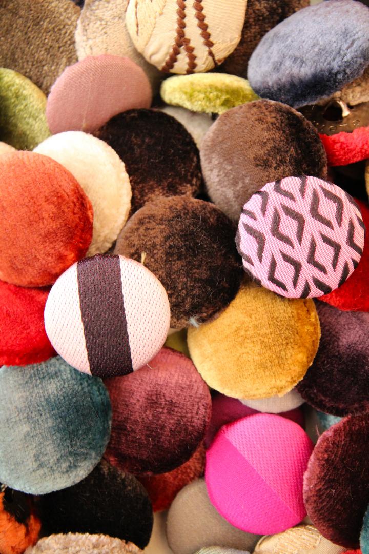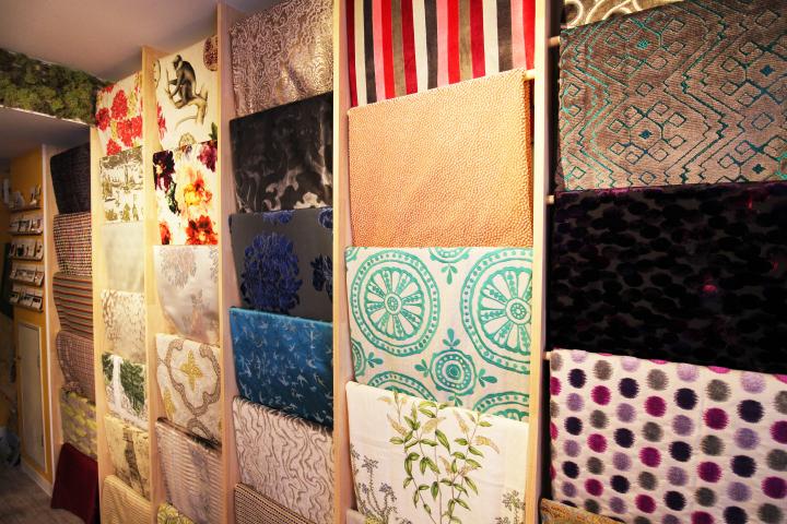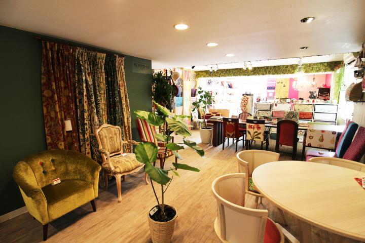 地下鉄東西線円山公園駅から徒歩5分の場所に、「アスカスタイル」はひっそりと佇んでいます。 店内にはありとあらゆる個性的なデザインの生地が飾られています。その数約100種類。デザイナーの渡辺さんがひとめぼれしたヨーロッパ製のおしゃれな生地がいっぱい♪また、ボタンやパイピングロープなどイギリスやフランスから輸入した椅子の装飾品も多数並んでいます。レトロでかわいいデザインは見ているだけで楽しい気持ちになります。
