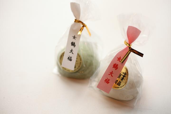 収穫量も少なく栽培しにくい品種のため、農家が激減。品種改良を重ねて「女鶴」を復活させた。「女鶴大福」(1個165円)