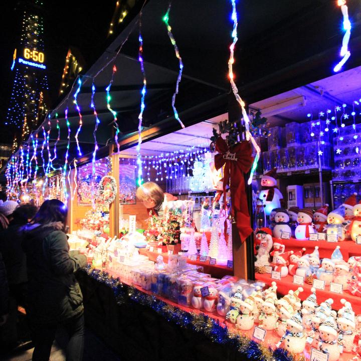 ドイツでは、毎年クリスマスシーズンになると街の中心部でクリスマス市を開催。イルミネーションがキラキラと輝く中で、飾りやろうそくなどが並び賑わいをみせます。そんな姉妹都市ドイツ・ミュンヘンでのクリスマス市を再現した「ミュンヘン・クリスマス市 in Sapporo」が、毎年この時期に札幌の大通公園2丁目で開催されています。毎年ミュンヘンのクリスマスの雰囲気にひたれるのは嬉しいですよね♪ 12月の札幌は雪も積もり始める時期なので、雪のなかで煌々と輝く大通公園を歩くのもロマンチックです。飲食店や物販ブースのほかにも、コーラスやゴスペルコンサートといったイベントが行われます。運が良ければサンタさんと記念撮影もできますよ。