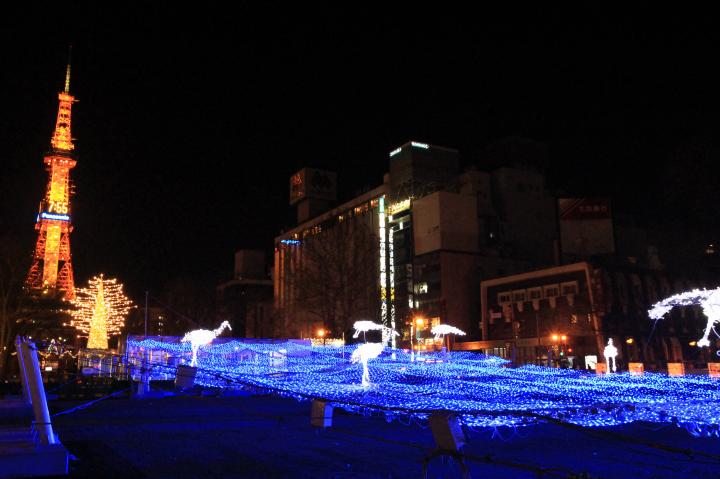 クリスマス市とほぼ同時期に、「さっぽろホワイトイルミネーション」も開催されています。大通公園では、約5万6000個のLEDで雄大な川の流れを表現したオブジェや宇宙をテーマにした巨大なシンボルオブジェなどを配置。電飾きらめく光の景色で酔いしれること間違いなし。12月25日(木)のクリスマスまで見ることができます。クリスマス市と一緒にイルミネーションも楽しみましょう。